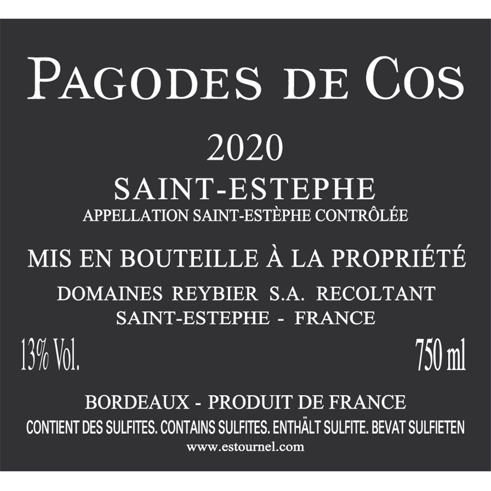 The 2020 Les Pagodes de Cos is composed of 58% Cabernet Sauvignon, 34% Merlot, 4% Cabernet Franc and 4% Petit Verdot. The harvest took place September 10–24 with a yield of 39 hectoliters per hectare. The alcohol weighs in at 13.28% with a pH of 3.85 and an IPT (total phenolic index) of 68. It is being aged in French oak barrels, 30% new. Medium to deep garnet-purple colored, it sashays out of the glass with pretty, open-knit scents of stewed black plums, boysenberries and warm cassis, plus savory hints of charcuterie, woodsmoke, black truffles and bouquet garni. Medium-bodied, the palate is packed with crunchy black fruit flavors and dried herbs accents, supported by bags of freshness and well-managed, grainy tannins, finishing with great length and a lively skip in its step.