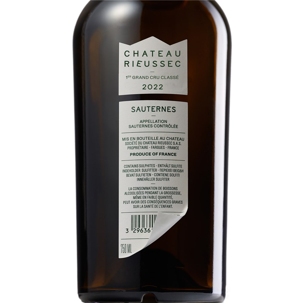 With 139 grams per liter of residual sugar, the 2022 Rieussec is one of the wines of the vintage. It reveals a complex, deep bouquet of exotic fruits, mangoes, dried apricots and spices. Full-bodied, dense and harmonious, it has a fleshy core of fruit, bright acids and lively, delicate acidity, leading to a long, fruity and ethereal finish. Fermented in new barrels for the Sémillon and in one-year barrels for the Sauvignon Blanc, this beauty was matured for 18 months in the same barrels.